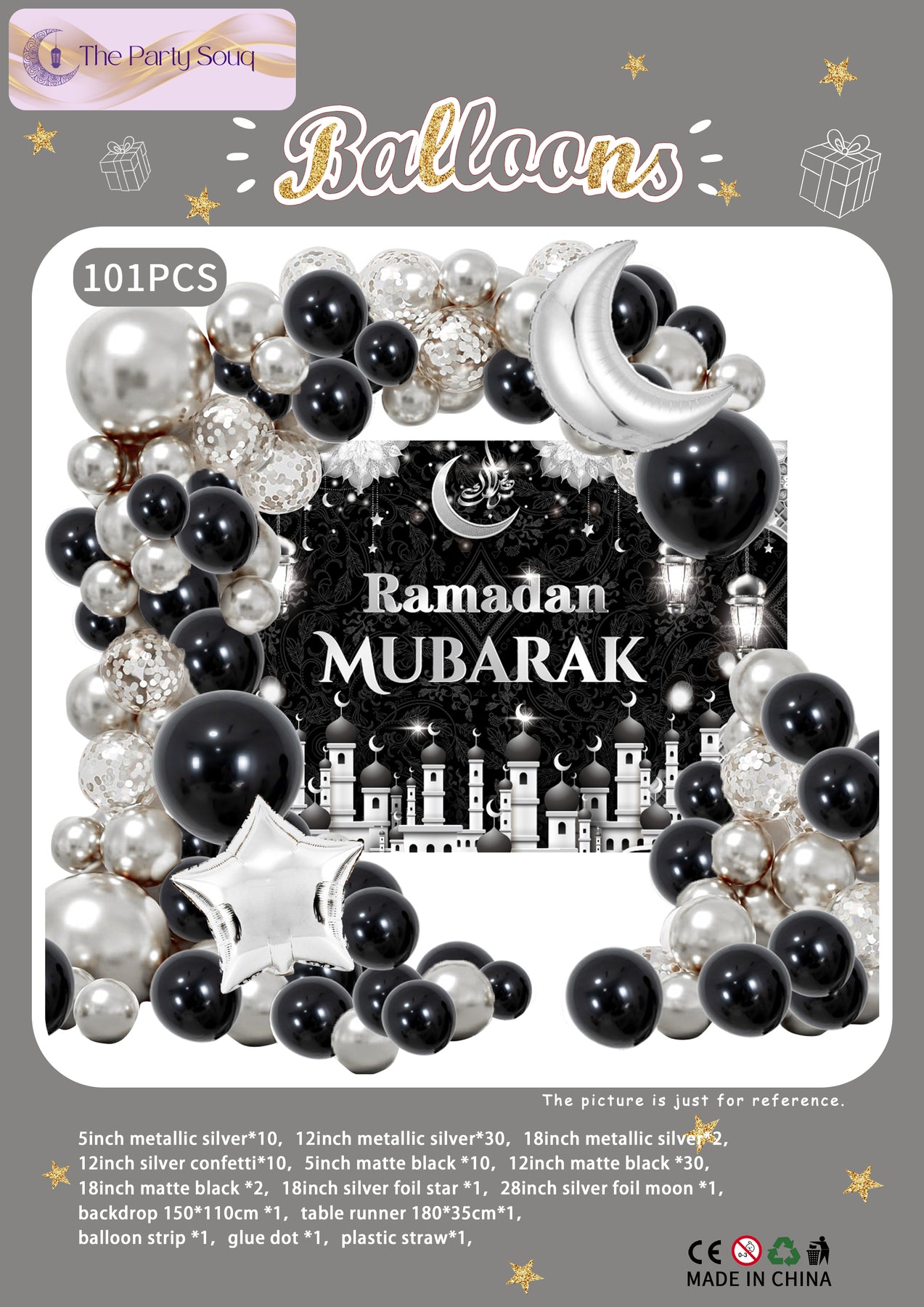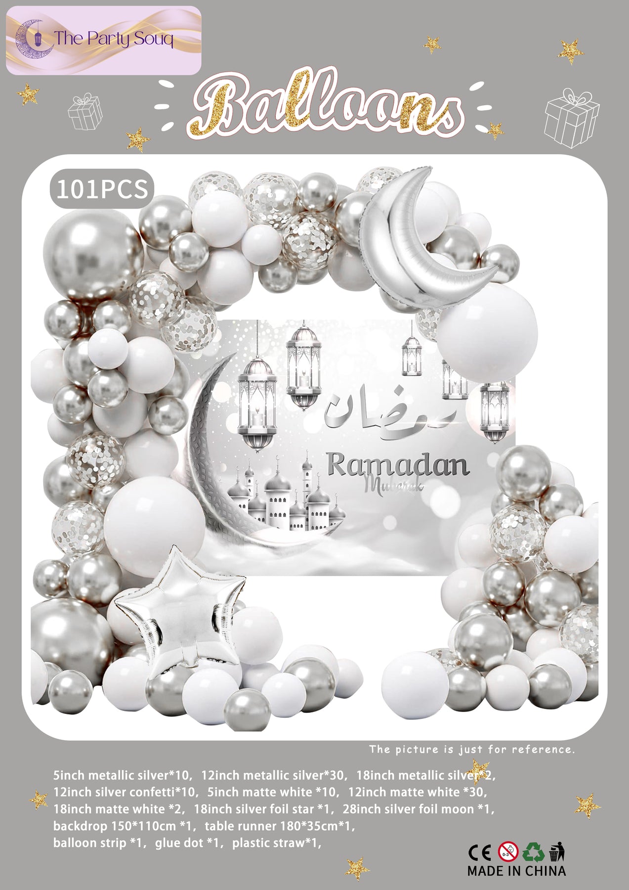 Celebrate Ramadan in style with our 100pc Balloon Arch Kit, complete with a stunning background and a table runner. This kit is designed to elevate your festive decor and create an inviting atmosphere for gatherings.